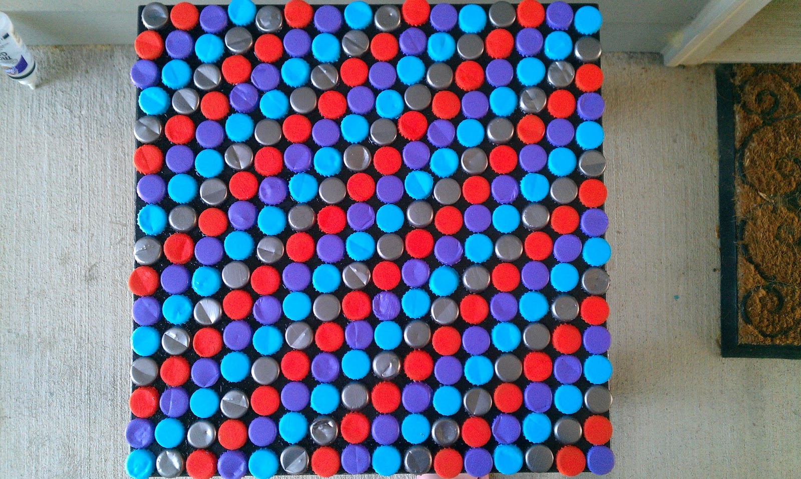 Pro tip: start collecting bottle caps. I've been obsessively collecting them to refinish the top of the mini bar and they've just become a valuable resource to have up your crafting sleeve. Mostly because there are so many things you can do with caps. These are 256 things you can do, right here on the floor.